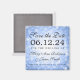 Elegantes Winterhochzeitdesign Save the Date mit Blue Winter Wonderland, individuelle Namen und Date Text.