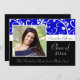 Graduation Einladung mit Foto und klassisch blau, schwarz und weiß Design mit Blume und fließenden Wirblen Weinreben. Niedlicher, schicker, delikater und feminininer Stil für Jung und Weibchen. Zeigen Sie Ihren persönlichen Stil mit diesem schönen Foto grad einladen. Toll als Abschluss Ankündigung oder Graduiertenparty Einladung.