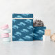 Ein stylisierter blauer Wolf (Canis lupus) wirft einen Schatten, wenn er durch schneebedecktes Gelände geht. Sie können die Hintergrundfarbe ändern.