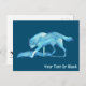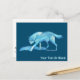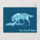 Ein stylisierter blauer Wolf (Canis lupus) wirft einen Schatten, wenn er durch schneebedecktes Gelände geht. Fügen Sie Ihren eigenen Text hinzu.
