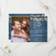 Diese rustikale Save the Date-Karte bietet Saitenleuchten, Ihr spezielles Foto und elegante Typografie auf einem rustikalen, blauen Holzpaneelhintergrund. Entwickelt von Thisisnotme©
