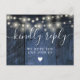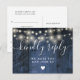 Eine Saite leuchtet rustikal blaue Stallholz boho RSVP Karte mit schicker Typografie. Auf der Rückseite finden Sie Ihre Details und eine lustige Gesangsanfrage. Entwickelt von Thisisnotme©