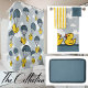 A whimsical and fun shower curtain with cute yellow rubber ducks falling through the blue sky using parachutes! I wonder where they came from?? It is ridiculous, but really sweet and quirky, because some of the ducks aren't using the parachutes properly... some are upside down and backwards! This would be a fun shower curtain for a kid's or teen's washroom. This curtain is part of a set including a towel set and and bath mat. But all the pieces, and do a quickie facelift for your bathroom!