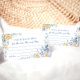 Mit unserer eleganten, modernen Blue Yellow Lemons Floral Date Night Ideas Brautparty Enclosure Card laden Sie zu einem exquisiten Garten der Eleganz ein, ein Fest, bei dem Eleganz und erfrischender Charme zitrustikaler Freude begegnen. Dieses Design verbindet nahtlos die beruhigenden Blautöne mit der lebendigen Energie gelber Zitronen, um ein Ambiente reiner Raffinesse zu schaffen. Dieses Stück enthält zarte blaue Blüten und klangvolle Zitronen, mit der würdevollen Aufnahme eines Teekopfes, die eine zusätzliche Touch von Charme. Die gelbe und blaue Farbe harmoniert in einem Tanz der Eleganz und schafft den perfekten Ton für einen Nachmittag voller Tee, Lachen und zeitloser Schönheit. Klicken Sie auf die Schaltfläche "Anpassen", um diese Vorlage zu personalisieren. Sie können den Namen einschließlich Stil, Farben und Größen ändern. Matching-Elemente verfügbar.