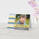 Vatertag benutzerdefinierte Fotokarte für Papa in modernen dunkelblauen, gelben, grauen und weißen Retro-Zickzack Streifen Muster. Brighten Papa's Tag dieses Vaters Tag mit dieser personalisierbaren und nachdenklichen Grußkarte.