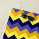 Ein Strandtuch mit niedlichem, allerneufarbenem Design von Chevrons in Blau, Gelb und Gold.