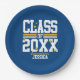 Mit diesen phantastischen, personalisierten Abschluss-Papier-Tellern in Blau und Gelb behalte Ihr Party einfach auf.