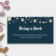 Niedlich bringen Sie eine Lesekarte, um Ihre Babydusche zu ergänzen. Das schlichte dunkelblaue Design mit gelben Sternen an der Spitze ist bezaubernd und eignet sich für geschlechtsneutrale Einladungen. Personalisieren Sie den gesamten Text mit Ihren eigenen, wenn Sie etwas ändern müssen. Illustriert und entworfen von Patricia Alvarez.