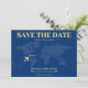 Blaue und gelbe Weltkarte Hochzeit speichern Sie die Datumskarte für eine Hochzeit in Urlaubsort. Personalisieren Sie es mit Ihren Veranstaltungsinformationen.
