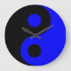 Ein blaues Yin-Yang-Design auf einer Uhr. Sie können dieses Design anpassen, indem Sie die Hintergrundfarbe ändern.