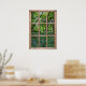 Poster, das wie ein Fenster aussieht - Wildgarten Diese grüne Szene zeigt einen Teppich aus wilden Blume, inklusive eines großen Flecks Bluebells. Die blauen, rosa und weißen Wildblumen wachsen unter großen Bäumen, die sich von grünen Zweigen abschütteln und darüber einen grünen Kronen bilden. An manchen Stellen bricht das Sonnenlicht auf den grünen Rasen. Das Bild, das wie ein Fenster aussieht, eignet sich für eine Prinzessin und bietet auch eine Touch Ruhe.