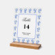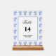 An acrylic sign for table numbers with beautiful bluebell flowers. The background and image can be personalized. Original artwork by W.B.