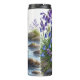 Ein sanfter Bach schlängelt sich durch eine üppige Landschaft, die von blühenden Bluebells gesäumt ist, die in strahlenden Violett- und Blautönen gehalten sind. Die Gartenlandschaft ist ruhig und malerisch, mit glatten Steinen inmitten frischer Frühlingshöhe. Wildblumen blühen im Überfluss, was der friedlichen Umgebung eine lebendige Farbe verleiht. Die ruhige Umgebung im Freien lädt zu einer ruhigen Reflexion und zu einem Besuch der Schönheit der unberührten Natur ein. Mit florierendem Blattwerk und Blütenblättern in der Brise erweckt die Szene einen perfekten Moment des Wachstums und der Harmonie zwischen Flora, Fluss und Sonnenlicht.