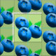 Auf grünem Hintergrund zeichnet sich ein Blaubeeren-Muster ab.