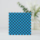 Blue and black checkerboard pattern with evenly spaced squares. The image conveys a sense of order and symmetry, with a vibrant color contrast.