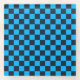 Blue and black checkerboard pattern with evenly spaced squares. The image conveys a sense of order and symmetry, with a vibrant color contrast.