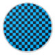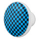 Blue and black checkerboard pattern with evenly spaced squares. The image conveys a sense of order and symmetry, with a vibrant color contrast.