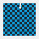 Blue and black checkerboard pattern with evenly spaced squares. The image conveys a sense of order and symmetry, with a vibrant color contrast.