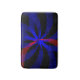 This custom blueberry color center geometric accent bath room floor mat features a modern red blue 3D circular design.