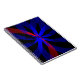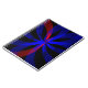 Custom blueberry color center accented geometric modern spiral notebook. The product features modern red blue circles merged within an abstract center design.