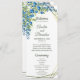 Blueberry mit Imitate Gold Foil Rahmen Rustikales Hochzeitsprogramm. Der romantische Stil mit Blueberries und blauen Wildblumen lädt zu einer rustikalen Hochzeit ein. Die geometrischen Imitate mit Goldfolienrahmen fügen eine moderne Touch hinzu. Der Aquarell-Spritzer ergänzt die Komposition und verleiht ihr einen besonderen Charme.