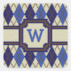 Raute geht 8-Bit mit diesem prächtigen marineblauen, denim blauen und khaki Farbschema mit einem kräftigen braunen Kontraststich und schafft so einen perfekten Look für Liebhaber dieses klassischen Musters. Passen Sie das Monogramm mit dem passenden Initial für eine personalisierte Touch an.