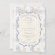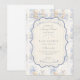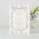 A sweet vintage-inspired design featuring delicate blue bows, soft striped detailing, and charming blueberry garden illustrations. Toile-style artwork with adorable animals and fruit baskets creates a classic storybook feel in a soft powder blue palette. The ornate central frame adds elegance while keeping the overall look light, refined, and timeless. Perfect for a baby shower with a gentle garden theme and a touch of traditional charm.