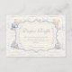 A sweet vintage-inspired design featuring delicate blue bows, soft striped detailing, and charming blueberry garden illustrations. Toile-style artwork with adorable animals and fruit baskets creates a classic storybook feel in a soft powder blue palette. The ornate central frame adds elegance while keeping the overall look light, refined, and timeless. Perfect for a baby shower with a gentle garden theme and a touch of traditional charm.