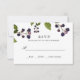 Diese elegante botanische RSVP-Karte, die sich mit unserer Blueberry-Hochzeitskollektion abstimmt, verfügt über einen Zweig von bestrichenen Blueberries und Blätter in Aquarellfarbe, die Ihren Wunschtermin und die Anzahl der Teilnehmer vervollständigen. Karten kehren zu einem koordinierten soliden lila um. Modernes und elegantes Design für elegante Hochzeiten im Winter oder im Herbst.