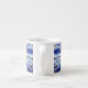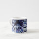 Weiße Espressotasse mit einer auffallenden blauen und weißen gefärbte Krawatte. Siehe dazu passende Süßigkeiten, Flasche, Pitcher, Papierplatte, Teekanne und Untersetzer. Sehen Sie sich die gesamte Psychedelic 60er-Tasse-Kollektion im NAHRUNGSMITTEL/BEV an. | Abschnitt Geschirr.