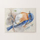 Bluebird Blue Orange Rustikale Wasserfarbe Puzzle