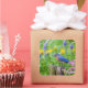 Bluebird-Männchen auf Zaunpfosten im Blumengarten Quadratischer Aufkleber
