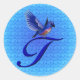 Eleganter Monogramm-Brief T mit einem hübschen Bluebird-Aufkleber oder Etikett. Klicken Sie auf Anpassen, um einen beliebigen Text hinzuzufügen, den Sie zum Personalisieren dieses Elements verwenden möchten. Tolle Geschenkidee! Besuchen Sie die Smilin'Eyes Monogramme, um mehr mit Monogramm Karten und Geschenke aus Blumen, Natur und digitaler Kunst zu sehen.
