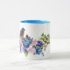 Diese Kaffee-Tasse mit blühender Keramik ist im Bluebird-Blumendesign gestaltet. Blumenkämme sind nachdenkliche Hauswärme und andere Gelegenheitsgeschenke für Gärtner und Vogelliebhaber. Machen Sie diese Keramik-Tasse besonders, indem Sie sie mit einem Namen oder einem anderen Text personalisieren.
