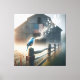 Ein Bluebird steht auf einem hölzernen Zaun mit musikalischen Noten und Symbolen, die aus seinem Schnabel fließen, und einer rustikalen alten Scheune mit amerikanischer Flagge