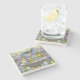 Bluebirds und Goldflossen, die in einem bunten Frühlingsblütengarten mit lila Clematis an einem weißen Zaun mit Birdbädern und den blauen und gelben Gänseblütenfarben einen angenehmen Aufenthalt verbringen. Artwork von Wildtieren und Pferdekünstler Crista S. Forest.