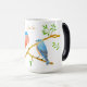 Ost-Bluebirds gibt es nur in Nordamerika. Während die weiblichen Vogelfarben nicht so hell sind wie die männlichen Farben, zeigen beide faszinierende blaue und rötlich-orangefarbene Kehle und Brust mit weißer Unterseite. Bild, Hintergrund und Text können angepasst werden. Original-Kunstwerk von W.B.