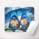 Bluebirds unter einem blauen Regenschirm in einem Regenschirm