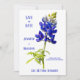 Ein einzigartiges "eine von einer Art" Foto einer Texas Bluebonnet Blume mit Stamm und Blätter. Nahe Blütenblätter und ein weicher Hintergrund, der bis zu einem reinen Weiß verblasst. Ein modernes Typendesign in der Blume blau. Füllen Sie Ihre Hochzeitsinformationen auf der Rückseite dieses einzigartigen Hochzeitseinladung Set aus.