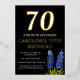 Bluebonnets Aquarellblüte, Texas Blume, moderne, schwarze und goldene Folie, stilvolle Einladungen zum 70. Geburtstag. Sie können es mit Ihren eigenen Daten personalisieren.