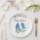 Bluebonnets, blaue Blüten, Texas, Teller aus Naturaquarellpapier. Elegante, einfache Kalligraphie, Foto Baby Duschpapier Teller. Personalisieren Sie es mit Ihren Daten.