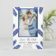 Elegante, moderne, bluebonnets Blume, blau, ländlich, rustikal, Drehbuch, Foto, Save the Date Einladungen. Bitte personalisieren Sie es mit Ihren Daten.