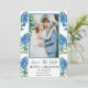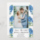 Elegante, moderne, bluebonnets Blume, blau, ländlich, rustikal, Drehbuch, Foto, Save the Date Einladungen. Bitte personalisieren Sie es mit Ihren Daten.