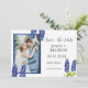 Elegante, moderne, bluebonnets Blume, blau, ländlich, rustikal, Drehbuch, Foto, Save the Date Einladungen. Bitte personalisieren Sie es mit Ihren Daten.