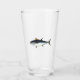 Eine Bluefinthunfischikone wird auf diesem Hochseefischereithemaglas gekennzeichnet. Das größte der Thunfische, der Bluefin kann Gewichte von fast 1500 Pfund erreichen. Bluefinthunfisch sind mit tiefes Seesportfischen, kommerziellem Fischen und Küstengebieten verbunden. Atlantischer und pazifischer Bluefinthunfisch werden in vielen der Ozeane und der Meere der Welt gefunden.
