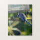 Dieser Bluejay füttre von einem Vogelfeder im Hinterhof und ist ein wunderschönes Puzzle für den Vogelliebhaber. Dieses Bild ist eine originale Vogelfotografie von JLW_FOTOGRAFIE