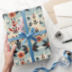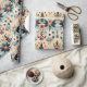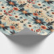 Südwestliche Verpackungspapier in Wüste Blues und Terrakotta, hervorgehoben durch Stammesfedern und Motiven.
