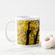 Gelbe Blätter und schwarze Äste eines Ahornbaumes vor dem Hintergrund des blauen Oktoberhimmel. Goldener Herbst. Gelbe und blaue Farbe
