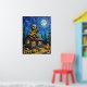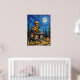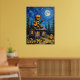Dieses charmante Kunstwerk besticht durch einen Bären, der als Feuerwehrmann verkleidet ist, mit Helm und Sonnenbrille, leidenschaftlich eine akustische Gitarre spielt, während er auf dem Dach einer rustikalen Holzhütte sitzt. Ein großer, heller Vollmond erhellt den strukturierten Nachthimmel, umgeben von Kiefern. Ein Glas Honig sitzt auf dem Boden und "Liebe mein Honig" wird kühn angezeigt. Die dicken, ausdrucksstarken Pinselstriche verleihen der Szene ein skurriles und herzzerwärmendes Gefühl.