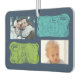 Genießen Sie Ihre Lieblings-Fotos, während Sie Ihren Wagen frisch behalten. Dieser Automobil-Lufterfrischer ist bereit, um mit 4 Ihrer Lieblings-Fotos (2 vorne und 2 hinten) personalisiert zu werden. Die Fotos sind Set vor marineblarem Hintergrund und zeigen Einwegkameras in aquamarinen, grünen und blauen Akzenten.